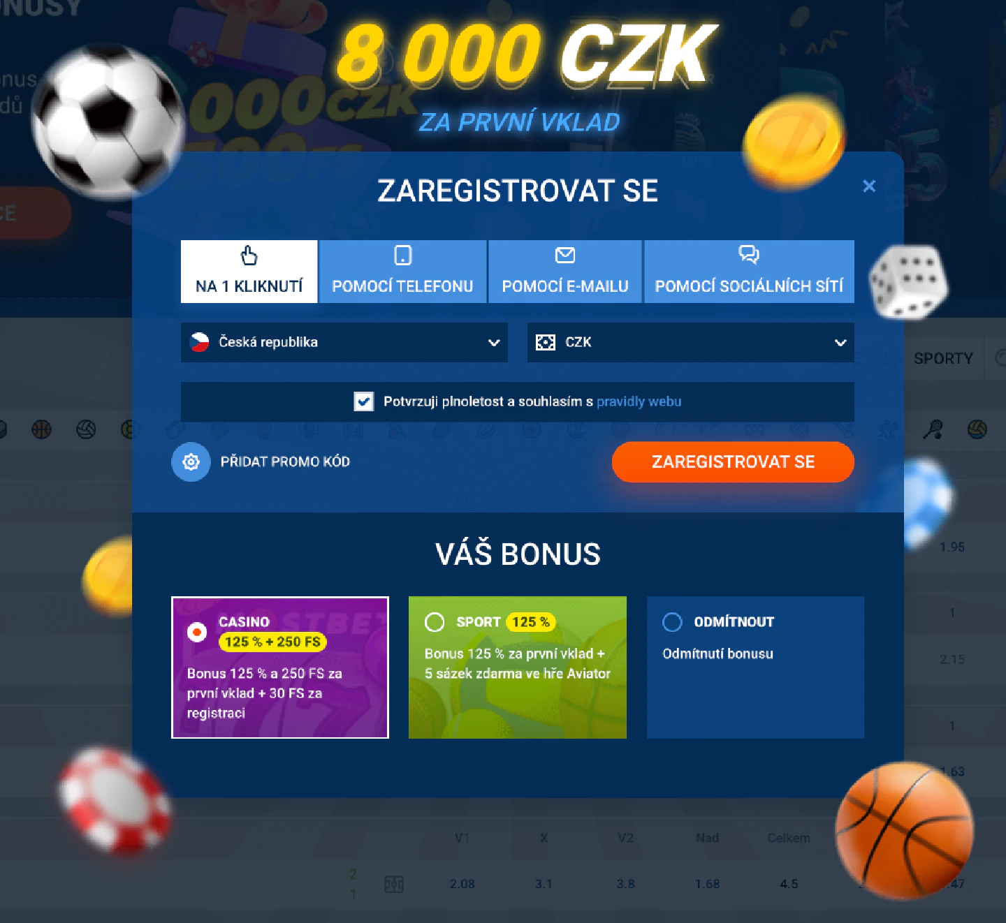 - Promo kód: Možnost zadání promo kódu pro získání bonusu (pokud je k dispozici).